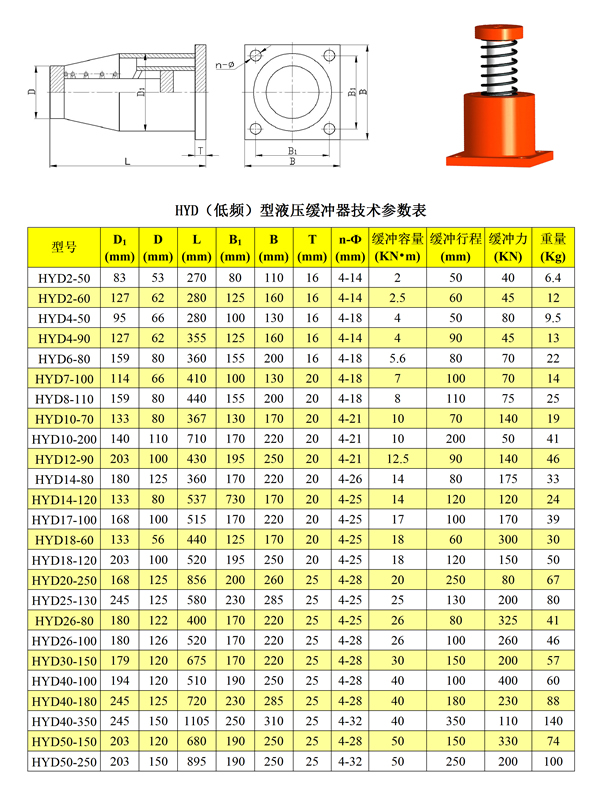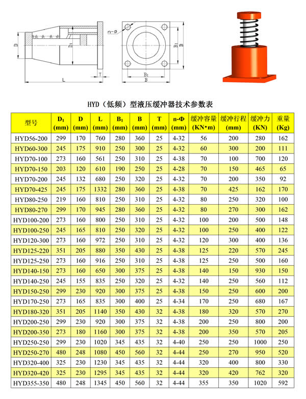 液壓緩沖器規格型號